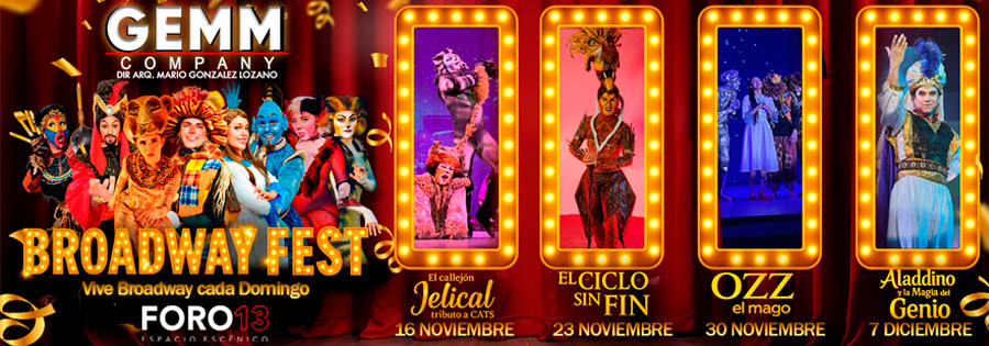 Te invitamos a disfrutar de BROADWAY FEST, un festival musical sin precedentes que reúne cuatro increíbles espectáculos tributo a los clásicos más aclamados del teatro.